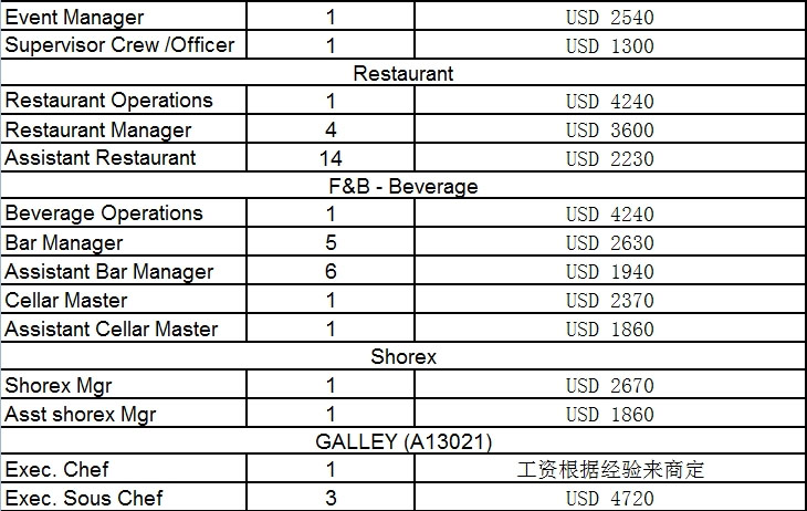 底薪:1000-3000美金以上,根據(jù)形象氣質(zhì),英語水平和工作經(jīng)驗定崗。