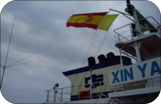 靠西班牙國,西班牙國旗懸掛在駕駛臺右橫珩第一掛旗繩上