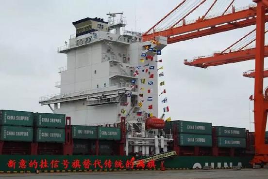 我在超大集裝箱船舶上創(chuàng)新懸掛滿旗,而且在船舶禮儀書本上還沒有這樣的先例。